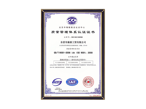 質(zhì)量管理體系認(rèn)證證書
